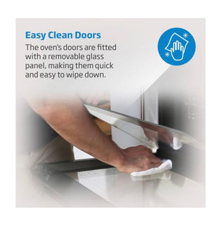 - Keep the oven door clean too – it's got no bolts, so you can slide the glass door out to clean it down