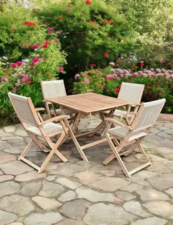 London 4 Seater Square Folding Set with London Rope Folding Armchairs